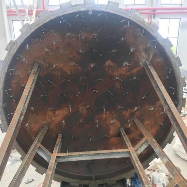 扒釘尺寸必須適宜,扒釘頭部應(yīng)有一定的開度,以保證足夠的抗剝落影響區(qū)域,扒釘應(yīng)保持一定的高度,高度不足,表面的澆注料得不到有效保護(hù)而先行脫落。扒釘過(guò)高,造成早期燒損和磨蝕,從而過(guò)早地失去對(duì)耐火材料的強(qiáng)化功能。應(yīng)在扒釘頭部有25~30mm后的保護(hù)層。