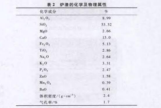 給出的燃燒木屑的爐渣結(jié)果顯示。爐渣是硅質(zhì),含堿、CaO、P2O5以及氧化鐵。爐渣非常致密,氣孔率為1.7%,熔點(diǎn)范圍在1250~1300℃之間。