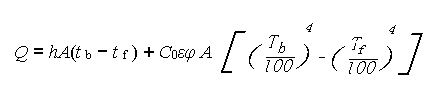 熱量通過爐襯材料由爐墻內(nèi)壁向外壁傳遞方式為導(dǎo)熱傳熱,爐墻外壁對周圍環(huán)境的傳熱方式是對流和輻射同時存在,由于爐墻外表面溫度較低(一般< 100 ℃),對流為主要傳熱方式,其總傳熱量為輻射傳熱和對流傳熱量之和,即: