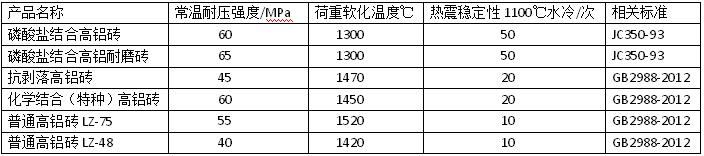 高鋁磚性能指標(biāo)變化較廣,在使用時(shí)需依制品等級(jí)和使用場(chǎng)所確定其物理性質(zhì)。一些高鋁磚的主要物理性能見下表所列