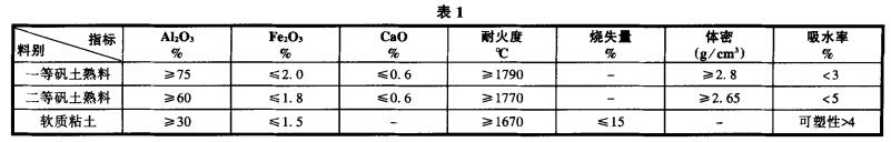 根據(jù)理論和實踐鄭州駒達耐火材料有限公司www.sergio-tacchini.cn,采用一、二等高鋁礬土加入少量軟質粘土,能制得荷重軟化溫度和耐壓強度均較高的制品,并能提高制品的成型和燒結性能。原料技術指標如下表1: