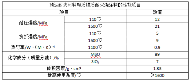 一、輕質(zhì)鎂質(zhì)耐火澆注料