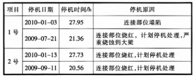 改造前,兩線因連接部位故障導(dǎo)致篦冷機(jī)停機(jī)情況見(jiàn)表1。