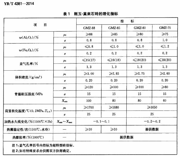 剛玉莫來石磚按主要成分AL2O3含量分別為GMZ-75、GMZ-80、GMZ-85、和GMZ-88四個(gè)牌號。牌號中G、M、Z分貝為剛、莫、磚、的漢語拼音首字母。數(shù)字部分表示氧化鋁含量的質(zhì)量百分?jǐn)?shù)。